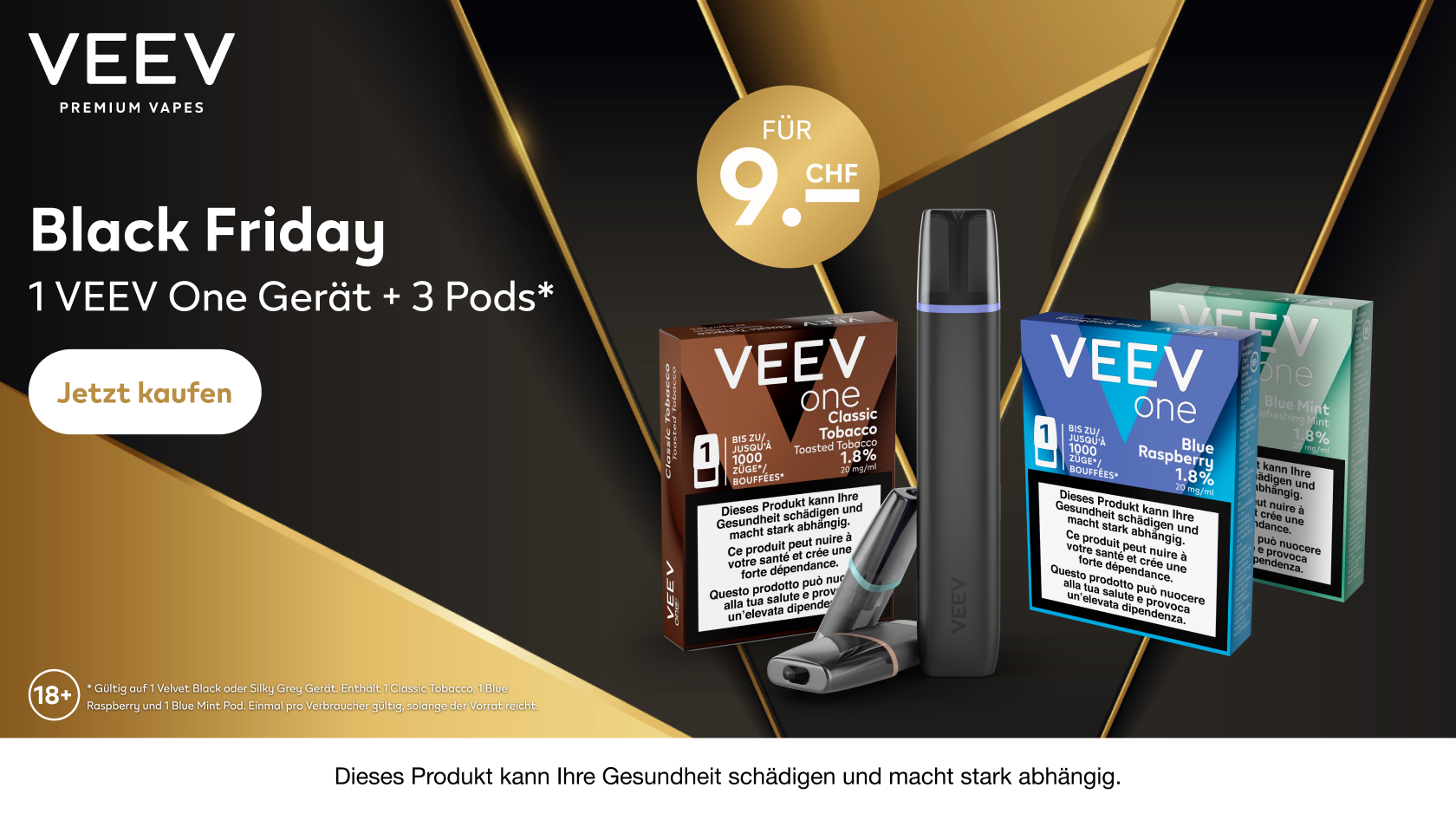 1 VEEV One Gerät + 3 Pods* für CHF 9.-. Wähle zwischen 1 Gerät in Velvet Black oder Silky Grey. Jetzt kaufen