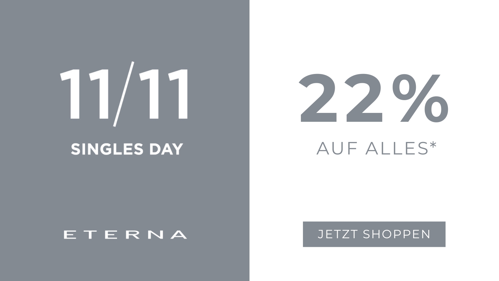 22% auf alles* – Code: SINGLE25CH. Singles Day› bei ETERNA > Jetzt shoppen und von 22% EXTRA zum Singles› Day profitieren. Egal ob Hemden, Blusen oder Strick – feiern Sie sich selbst mit den neuen Looks von ETERNA. *Einlösbar bei einem Einkauf bis spätestens 16.11.2025 im ETERNA Onlineshop (https://www.eterna.de/ch/) ab einem Mindesteinkaufswert von CHF 59 (nach Retoure). Den Rabattcode im Warenkorb eingeben. Nicht mit anderen Gutschein- und Rabattaktionen kombinierbar.