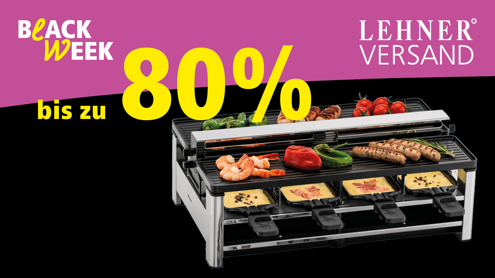 Bei Lehner Versand profitieren Sie während der gesamten Black Week von 20–80 % Rabatt auf das gesamte Sortiment – von Mode über Haushalt bis Wohnen.