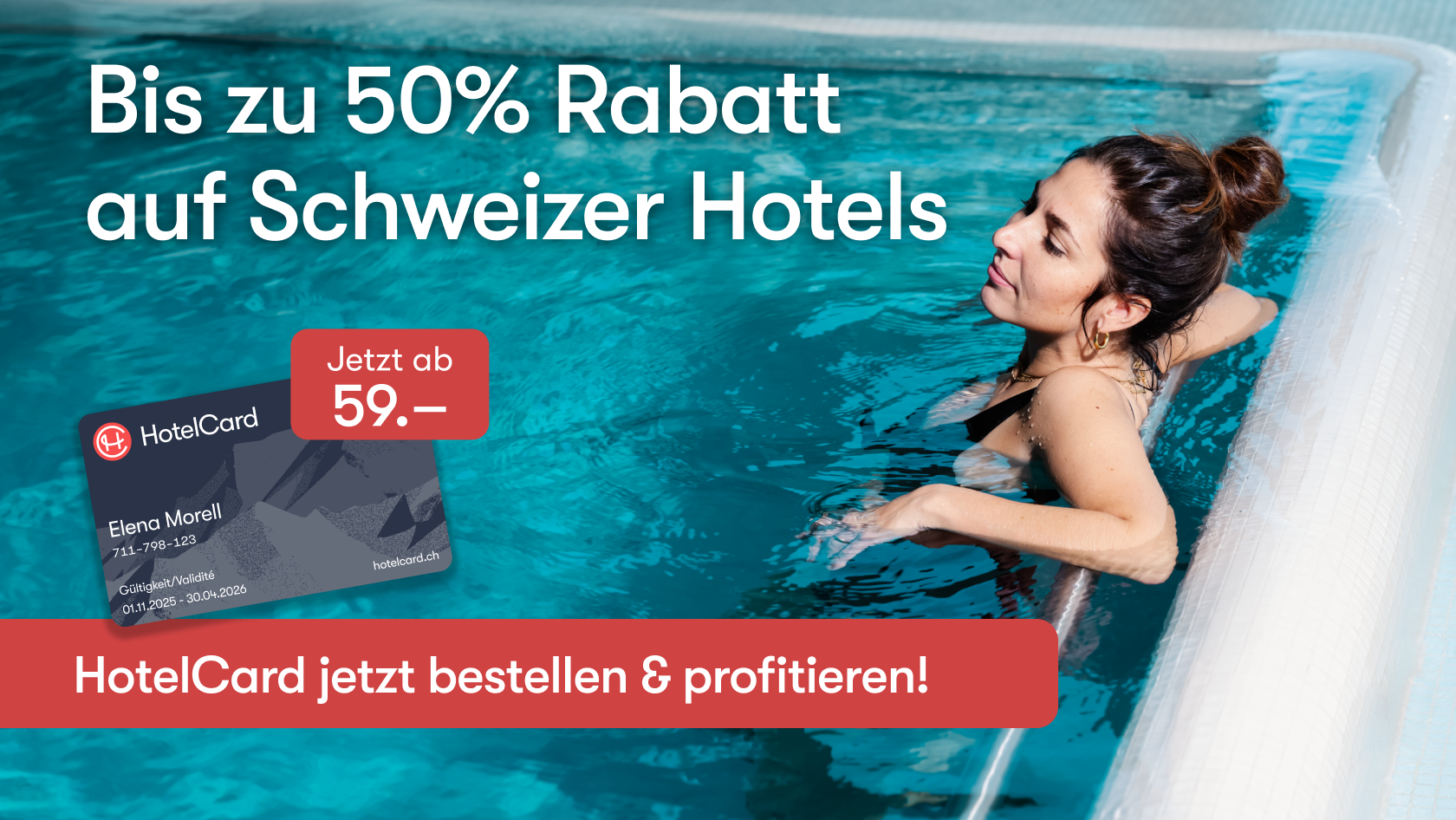 Ob Wellness, Städtetrip, Wandern oder «dolce far niente»: Mit der HotelCard profitieren Sie von bis zu 50% Rabatt in 500 ausgewählten Hotels. Jetzt profitieren!